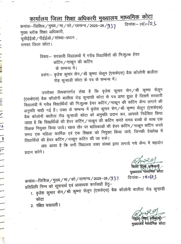 Homeਅਜਬ ਗਜਬ ਅਜਬ ਗਜਬ Strange Order: Free Hair Cutting Camps in Government Schools, Mandatory Female Staff for Girls, Kota News in Hindi By tru.khabar@hotmail.com November 16, 2025 0 19 FacebookTwitterPinterestWhatsApp Share FacebookTwitterPinterestWhatsApp Previous articleJapan Arson Kills 33Next articleThe four gates of the Jagannath Puri Temple hold the secrets of salvation, victory, prosperity, and righteousness. tru.khabar@hotmail.comhttps://alivepunjab.com Related Articles ਪੰਜਾਬ ਸੁਨਾਮ ਜ਼ਮੀਨਦੋਜ ਪਾਈਪਾਂ ਪਾਉਣ ਦੀ ਕੀਤੀ ਸ਼ੁਰੂਆਤ, 2 ਕਰੋੜ 40 ਲੱਖ ਰੁਪਏ ਦੀ ਆਵੇਗੀ ਲਾਗਤ ਪੰਜਾਬ ਮੰਡੀ ‘ਚ ਕਵਰੇਜ ਕਰ ਰਹੇ ਪੱਤਰਕਾਰ ਰਣਜੀਤ ਗਿੱਲ ‘ਤੇ ਜਾਨਲੇਵਾ ਹਮਲਾ, ਹਸਪਤਾਲ ਦਾਖ਼ਲ ਅਜਬ ਗਜਬ Ahmedabad: Tailor fined ₹7,000 for failing to stitch a blouse on time after receiving an advance payment, Ahmedabad News in Hindi LEAVE A REPLY Cancel reply Comment: Please enter your comment! Name:* Please enter your name here Email:* You have entered an incorrect email address! Please enter your email address here Website: Save my name, email, and website in this browser for the next time I comment. Stay Connected0FansLike0FollowersFollow0SubscribersSubscribe - Advertisement - Latest Articles ਪੰਜਾਬ ਸੁਨਾਮ ਜ਼ਮੀਨਦੋਜ ਪਾਈਪਾਂ ਪਾਉਣ ਦੀ ਕੀਤੀ ਸ਼ੁਰੂਆਤ, 2 ਕਰੋੜ 40 ਲੱਖ ਰੁਪਏ ਦੀ ਆਵੇਗੀ ਲਾਗਤ ਪੰਜਾਬ ਮੰਡੀ ‘ਚ ਕਵਰੇਜ ਕਰ ਰਹੇ ਪੱਤਰਕਾਰ ਰਣਜੀਤ ਗਿੱਲ ‘ਤੇ ਜਾਨਲੇਵਾ ਹਮਲਾ, ਹਸਪਤਾਲ ਦਾਖ਼ਲ ਅਜਬ ਗਜਬ Ahmedabad: Tailor fined ₹7,000 for failing to stitch a blouse on time after receiving an advance payment, Ahmedabad News in Hindi ਨੌਕਰੀ ECGC Releases Recruitment Notification for 30 Probationary Officer (Executive Officer) Posts—Applications Deadline December 2, 2025 ਨੌਕਰੀ ग्राम विकास अधिकारी (सीधी भर्ती) परीक्षा–2025 के मास्टर प्रश्न पत्र व आंसर-की जारी, आपत्तियां आमंत्रित Load more