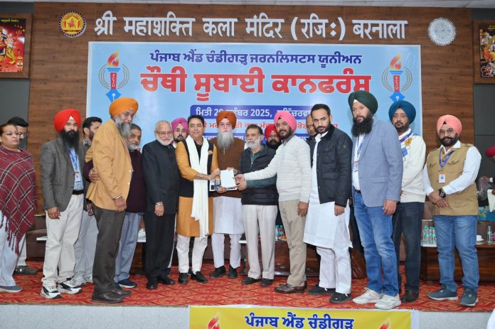 ਯੂਨੀਅਨ ਦੀ ਇਸ ਸੂਬਾ ਪੱਧਰੀ ਕਾਨਫਰੰਸ ਦੌਰਾਨ ਯੂਨੀਅਨ ਵੱਲੋਂ ਤਿਆਰ ਕੀਤਾ ਰੰਗਦਾਰ ਸੋਵੀਨਾਰ ਵੀ ਰਿਲੀਜ਼ ਕੀਤਾ ਗਿਆ। ਮੰਚ ਦੀ ਕਾਰਵਾਈ ਸਟੇਟ ਬਾਡੀ ਦੇ ਸੀਨੀਅਰ ਅਹੁਦੇਦਾਰ ਸ੍ਰੀ ਪ੍ਰੀਤਮ ਰੁਪਾਲ ਅਤੇ ਜ਼ਿਲ੍ਹਾ ਜਥੇਬੰਦੀ ਦੇ ਜਨਰਲ ਸਕੱਤਰ ਨਿਰਮਲ ਸਿੰਘ ਪੰਡੋਰੀ ਨੇ ਸਾਂਝੇ ਤੌਰ ‘ਤੇ ਬਾਖੂਬੀ ਨਿਭਾਈ। ਇਸ ਸਮਾਗਮ ਨੂੰ ਸਫਲ ਬਣਾਉਣ ਲਈ ਪੰਜਾਬ ਐਂਡ ਚੰਡੀਗੜ੍ਹ ਜਰਨਲਿਸਟਸ ਯੂਨੀਅਨ ਦੀ ਬਰਨਾਲਾ ਜ਼ਿਲ੍ਹਾ ਇਕਾਈ ਦੇ ਪ੍ਰਧਾਨ ਜਗਸੀਰ ਸਿੰਘ ਸੰਧੂ, ਚੇਅਰਮੈਨ ਰਵਿੰਦਰ ਰਵੀ, ਜ਼ਿਲ੍ਹਾ ਜਨਰਲ ਸਕੱਤਰ ਨਿਰਮਲ ਸਿੰਘ ਪੰਡੋਰੀ, ਖਜ਼ਾਨਚੀ ਬਲਜਿੰਦਰ ਸਿੰਘ ਚੌਹਾਨ, ਲੀਗਲ ਐਡਵਾਈਜ਼ਰ ਅਭਿਸੇਕ ਸਿੰਗਲਾ, ਸਰਪ੍ਰਸਤ ਕੁਲਦੀਪ ਸੂਦ, ਸੀਨੀਅਰ ਮੀਤ ਮਹਿੰਦਰ ਸਿੰਘ ਰਾਏ, ਪੀ.ਆਰ.ਓ. ਰਾਜਿੰਦਰ ਸ਼ਰਮਾ, ਮੀਤ ਪ੍ਰਧਾਨ ਰਜਿੰਦਰ ਵਰਮਾ, ਸਕੱਤਰ ਸੁਰਿੰਦਰ ਗੋਇਲ, ਸਕੱਤਰ ਅਵਤਾਰ ਸਿੰਘ ਕੌਲੀ, ਜਥੇਬੰਦਕ ਸਕੱਤਰ ਅਵਤਾਰ ਸਿੰਘ ਫਰਵਾਹੀ, ਪ੍ਰੈਸ ਸਕੱਤਰ ਹਰਵਿੰਦਰ ਸਿੰਘ ਕਾਲਾ, ਮੀਤ ਪ੍ਰਧਾਨ ਰਣਜੀਤ ਸੰਧੂ, ਸਕੱਤਰ ਗੋਬਿੰਦਰ ਸਿੰਘ, ਕਾਰਜਕਾਰਨੀ ਮੈਂਬਰ ਬੰਧਨਤੋੜ ਸਿੰਘ, ਜਸਵੰਤ ਸਿੰਘ ਲਾਲੀ, ਅਜੇ ਟੱਲੇਵਾਲ, ਅਵਤਾਰ ਸਿੰਘ ਚੀਮਾ, ਬਲਰਾਮ ਚੱਠਾ, ਸੰਦੀਪ ਪਾਲ , ਅਵਤਾਰ ਸਿੰਘ ਮਹਿਤਾ, ਲਿਆਕਤ ਅਲੀ, ਰਾਮ ਸਿੰਘ ਧਨੌਲਾ, ਗਮਦੂਰ ਰੰਗੀਲਾ, ਸੁਰਿੰਦਰ ਗੋਇਲ, ਗੁਲਸ਼ਨ ਕੁਮਾਰ, ਕੁਲਦੀਪ ਸਿੰਘ ਸਮੇਤ ਜ਼ਿਲ੍ਹਾ ਜਥੇਬੰਦੀ ਦੇ ਸਾਰੇ ਹੀ ਮੈਂਬਰ ਸਹਿਬਾਨ ਵੱਲੋਂ ਅਹਿਮ ਯੋਗਦਾਨ ਪਾਇਆ ਗਿਆ।